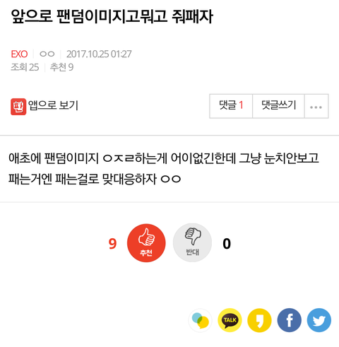 어찌보면 참 대단하다 싫어하는 팬덤 톡 관음하면서 하나하나 캡쳐해가며 욕먹이려하는짓이ㅋㅋㅋㅋㅋ니 인생 살아..니가 이렇게 해서 얻는게 뭐임 이럴시간에 니오빠 사랑한단 말 한번 더 하겠다