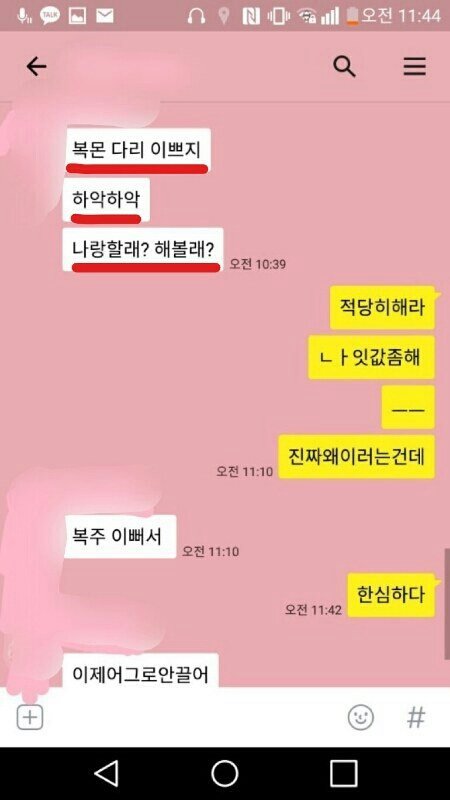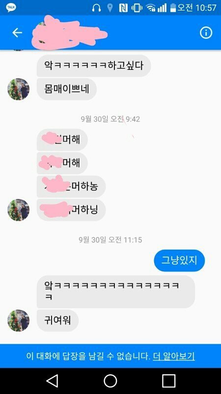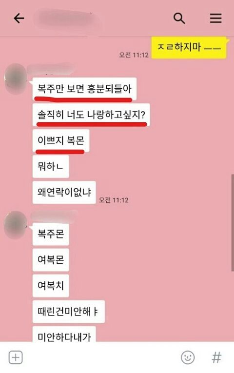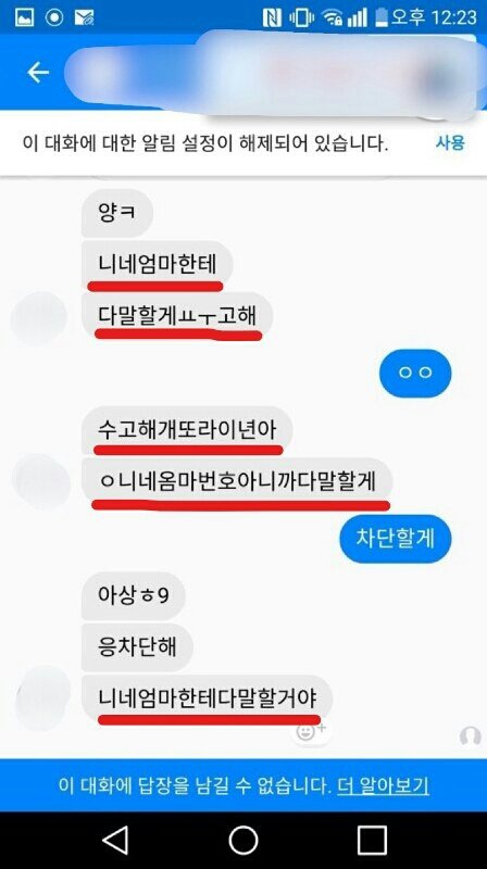 “내가 계속 말 걸어도 네가 차단 계속 하면 되지않느냐” 라는 적반하장식의 입장으로 의기양양한 태도를 보이고 있습니다.