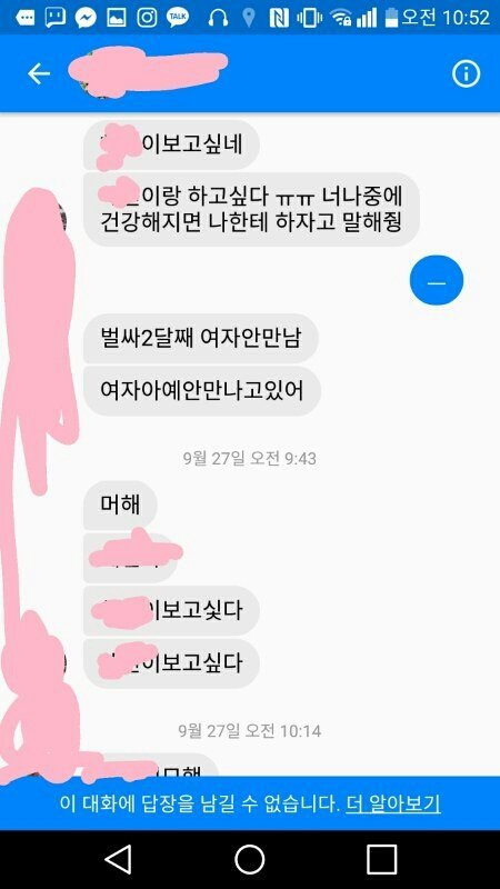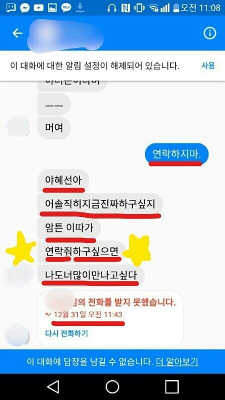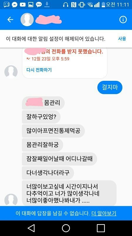 이런 내용의 메세지와 연락이 8개월간 지속되었고 3일전까지도 계속 되었음.