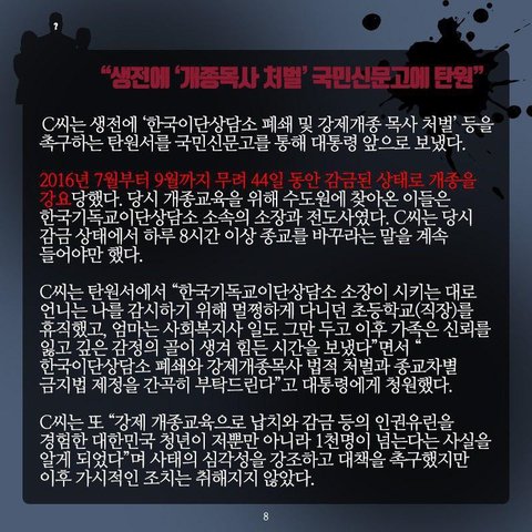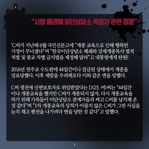 이러한 대한민국에서 성년이 된 청년이 강제 개종교육을 받다 질식사를 당했다????