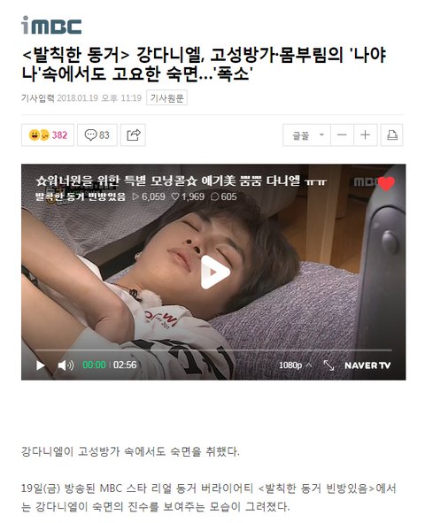 기사) <발칙한 동거> 강다니엘, 고성방가·몸부림의 '나야 나'속에서도 고요한 숙면…'폭소'