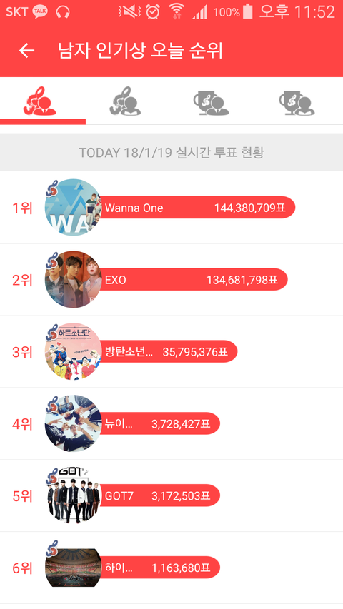 워너블들 한번뿐인 투표라 그런지 화력 쩐다 대박 ㄷㄷㄷ