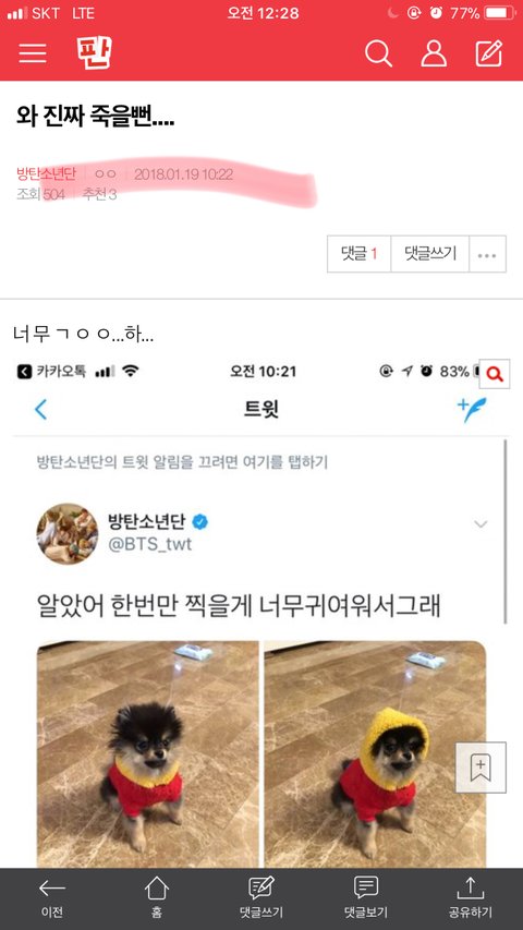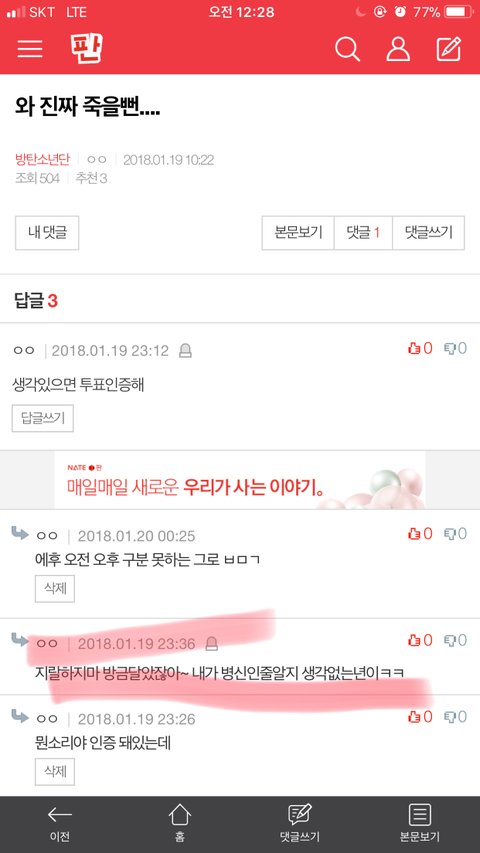 오전에 내가 쓴글에 댓 달림 투표인증하래 이미 글쓸때 인증함 근데 방금 인증했다고 고나리 ㅋㅋㅋㅋㅋㅋ 오전이라고 떡하니 돼있음 ㅋㅋㅋ 이런 어그로 고나리 낚이지마! 절대 이삐 아님!