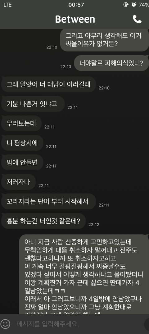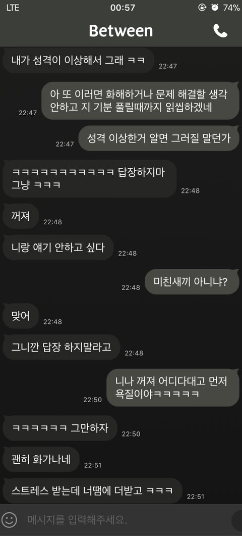 대화 도중 갑자기 이렇게 싸움이 나면서 저한테 꺼지라고 욕을 하네요