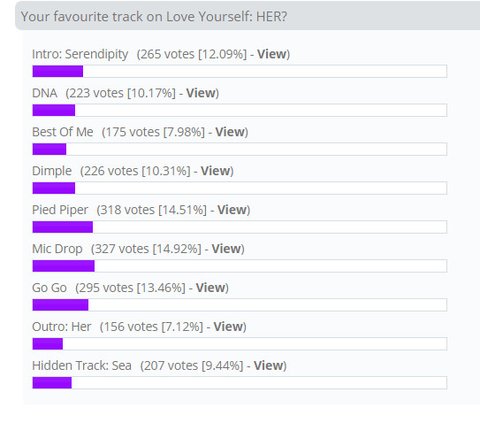 해외 사이트 지난 앨범 최애곡 투표. 전곡이 비슷하게 사랑받음