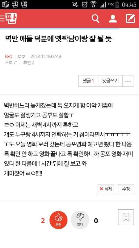 개삘이야 그 뒤로 쭉 연락하는 중 걔 어제 친구들이랑 서울간다고 자랑하고 나한테 옷 골라 달라고 사진 왔는데 사진에 수면 바지랑 발 찍힌 거 졸귀고 얘가 공부도 전교권이고 저쪽 그룹에 T 존 오진다는 멤버 느낌 남 ㅇㅇ