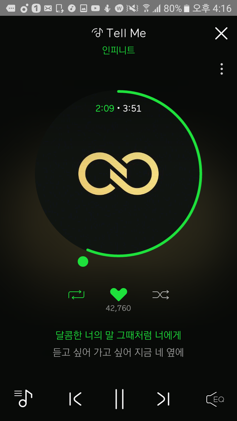 아이폰으로 스밍돌려놓고 나갔다왔는데 내폰으로 돌아가는지 확인하려고 멜레기들어가서 재생버튼 눌렀는데