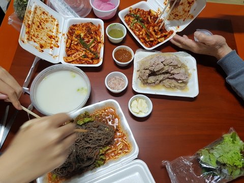 보쌈시켰는데 고기 저거 하나에 쓰잘데기없이 김치는 두개나 주고있다 저 김치도 배추가 3 무가 7 엄마가 시켰던데 전화해보니 저게 맞단다 ... 앞으로 이 식당은 안시켜먹기로 했다