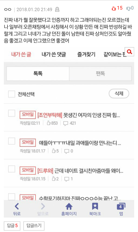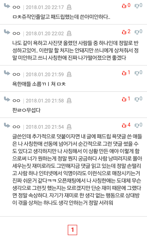 글쓴이한테 온갖 욕 패드립 난무했는데