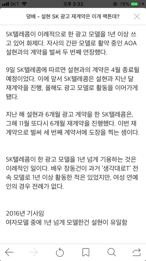 몸매로 떴다 이런 얘기 많았음 그리고 옛날엔 수지가 cf고 영화 드라마 종횡무진하면서 진짜 티비틀면 수도꼭지처럼 많이 나왔었는데 어느순간부터 수지는 점점 멀어지고 바톤터치로 설현이 제2의 수지라는 말 나올정도로 2016~2017 까지 설현의 해 였을 정도로 cf 겁나 많이 찍어댔음 솔직히 aoa 데뷔초때만 해도 인기 별로 없었는데 갑자기 저렇게 cf에 영화에 많이 하는것도 누군가의 도움으로 떳나? 할정도로 의심이 들긴 함 aoa에서 설현만 유독 잘나가는게 의심되기도 하고 초아도 나간거 보면 음...