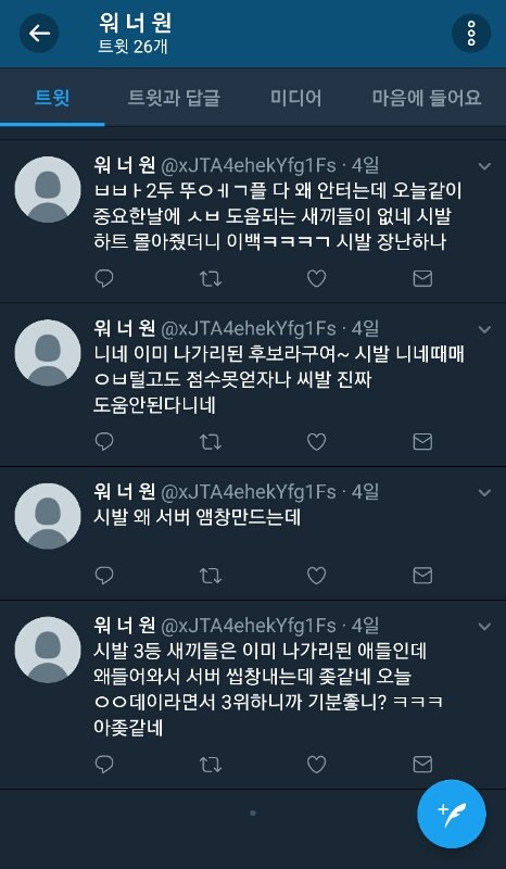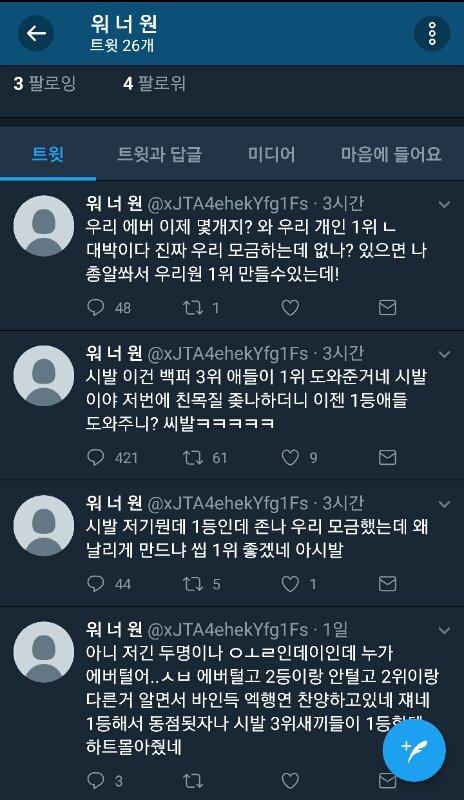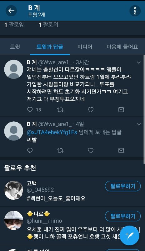 ?띠용 4일전에 만들어진 전체트윗이 2개인 알계