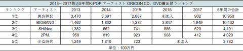 1위 동방신기 109억 5000만엔(한화 1057억 1500만원)