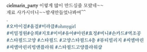 저런 거 만드는 수제 작업실에 가서 직접 멤버들이 배우고 하나하나 틈틈히 만들어서 결국은 100개를 완성함 오마이걸 컴백해서 바빴을텐데 그걸 하나하나 만든 정성과 마음이 대단하고 대견하다고 느낌 진짜 ㄷㄷ..