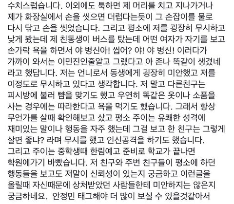 아 '년'이라 쓴건 욕이 아니라 여자애들이 그렇게 퍼뜨리고 다녔으니까 ㅎㅎ