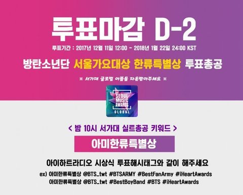 해시는 아이하.트 투표해시들만 하고 #아미한류특.별상 이게 아니라 해시없이 아미한.류특별상 인거 알지???