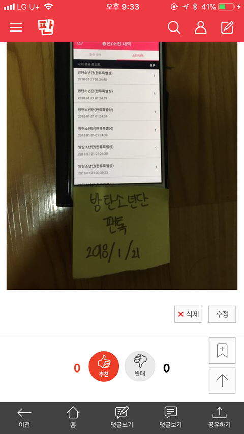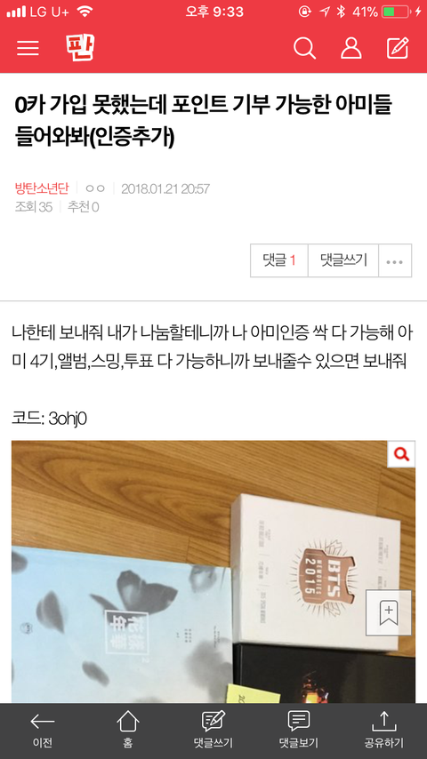 나 10시에 0카에 투표권 나눔할건데 투표권 남는 아미 기부좀
