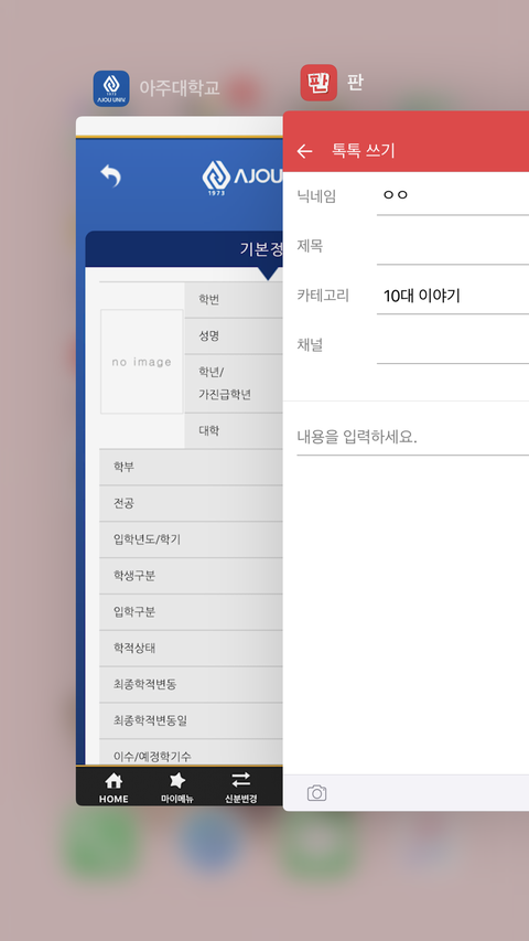 확실한 인증 수단이라고 생각합니다. 아주대학교 앱이고, 판 앱이랑 같이 찍었으니 아주대 학생 인증될거라고 생각합니다. 경영대 학생입니다. 간단하게 질문받아요.