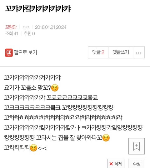 '꼬쿄쿄쿜쿄 꼬캬캬캬캬'