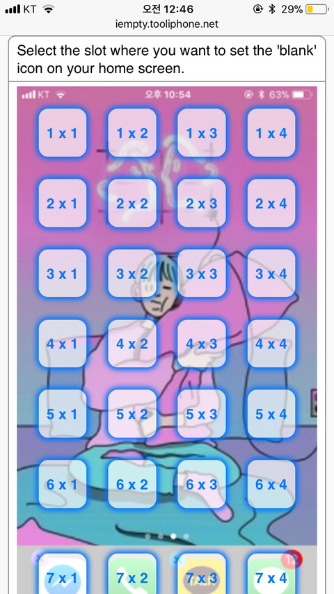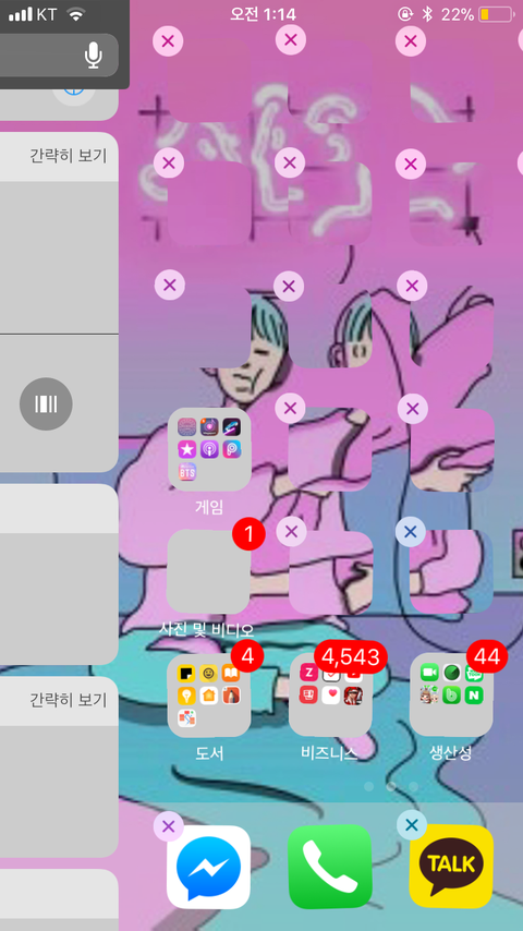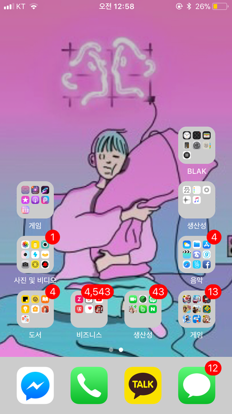 이렇게 투명폴더를만들어준다음에 앱이나 폴더로 11자 모양으로 만든다거나 하트를만들고 나머지를 배경화면에 맞는 투명폴더로 채우면되겠지!!