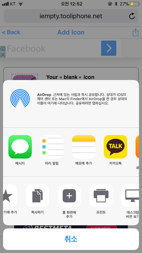 홈화면에 추가하기 누르면 무슨 화면나오는데 그냥 아무것도 안건들이고 바로 오른쪽위에있는거 누르면되!! 캡쳐를 못해서!ㅠ