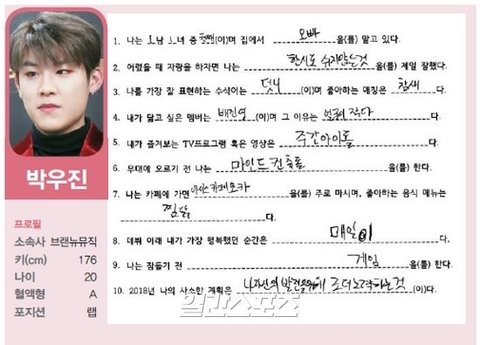 우진이 10문 10답 떴어 ㅋㅋㅋ