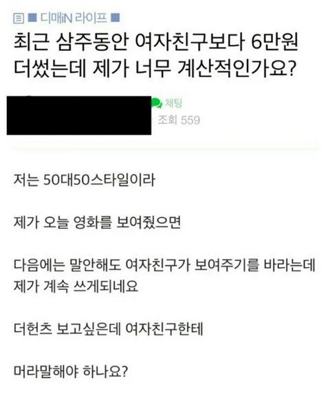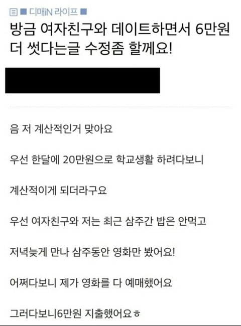 3주동안 데이트 내내 머릿속에 돈생각뿐이었을듯...