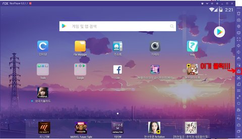 3. 녹.스를 다운받으면 이런 화면이 떠! 그러면 빨갛게 표시한 오른쪽 버튼을 눌러.