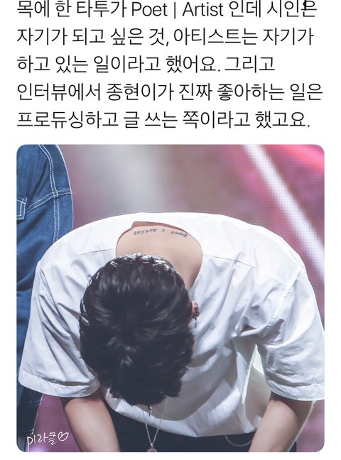 종현이가 목뒤에다 앨범이름 문신해놓은거야