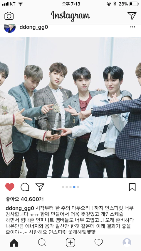 여태까지 일위해서 찍은 단체사진 다 올려줬당 글도 인스피릿이랑 멤버들한테 고맙다고 올렸어 ㅎㅎ 동우 참 착한듯