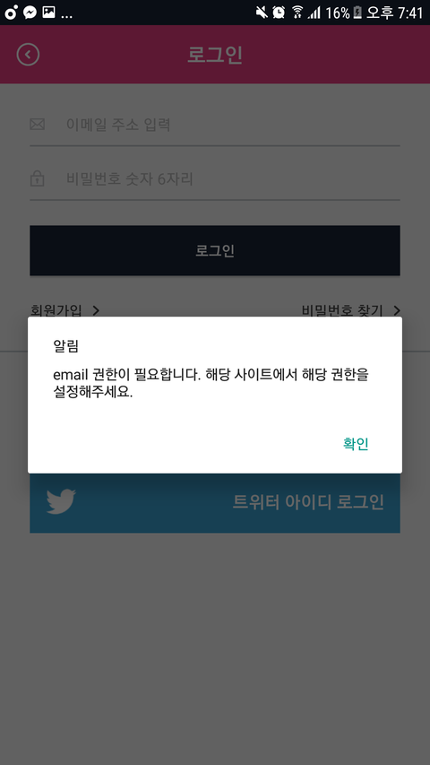 트윗이랑 페북으루 로그인하려는데 이론다..