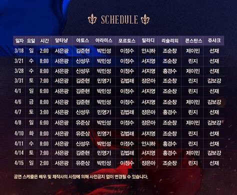 삼총사 캐스팅 달력