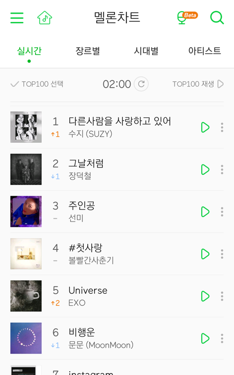 2시차트 멜론 1위 ..