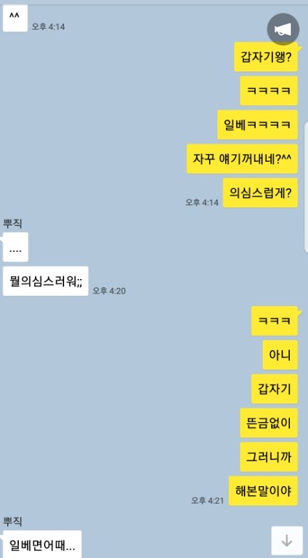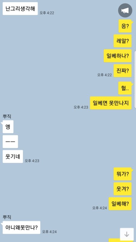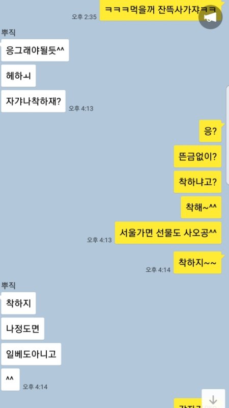 남친한테 '언니가 너 일베하냐더라ㅋㅋ'라고 얘기했고 (의심1도 안했고 그냥 알려줌) 남친도' 일베?그런거 안한다ㅋㅋ '라고함