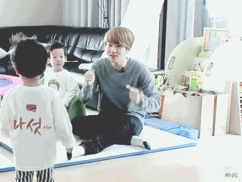 애기랑 잘 놀아주는 백현이