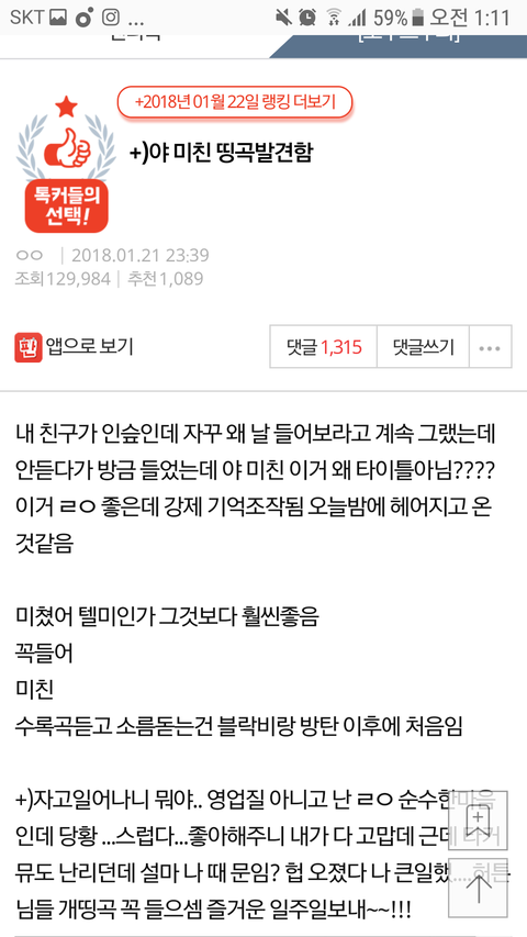 앞에 올라온 너네들말에 충분히 동감해. 그런데 어제 타팬이랑 머글들 반응 좋았고 지금은 차트올라가는 순위도 어제보다 더 빠르고.. 물론 조심하는게 좋지만 우리가 너무 조심하는거 같다는 생각이 들어. 지금이 딱 고지인데 타이밍 놓칠까봐 불안하기도 하구. 지금 여기서 글 하나 정리해서 엔터톡에 총공부탁하는 글 올리는게 어떨까?