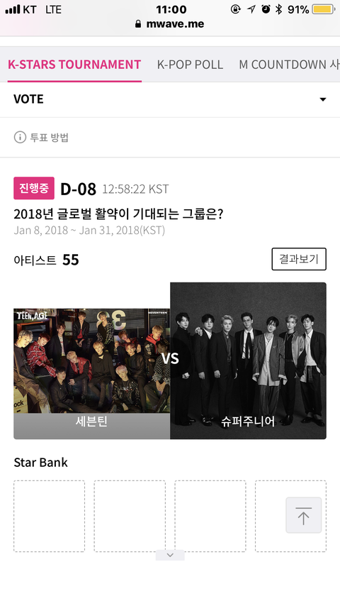 여기도 누르면 방탄소년단나와!월드컵처럼하는 투표인듯!