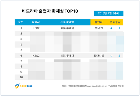 1월 3주차 비드라마 출연자 화제성 6위 강다니엘