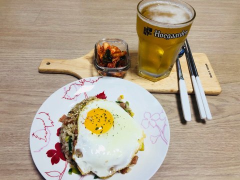 냉장고 탈탈털어 파기름 낸 스팸굴소스 볶음밥으로 일요일을 보내봅니다.