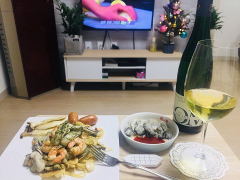 굴로 오일파스타를!! 화이트 와인과 함께~