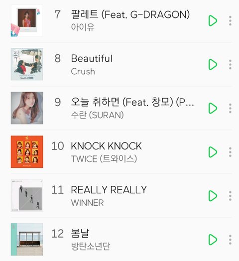 1위 ~ 9위 모두 솔로가수. 아이돌 없음