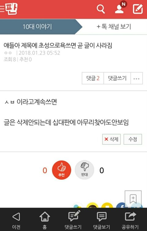 몇초후에 그 글이 십대판 최신글 목록 어디에서도 안보임.