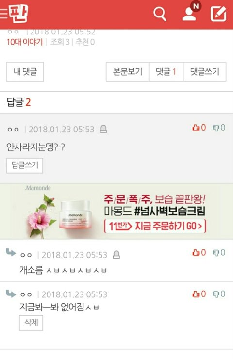 글이삭제되는 그 짧은 시간동안 들어가서 댓글을 단 사람, 답글을 단 사람. 그리고 글쓴이