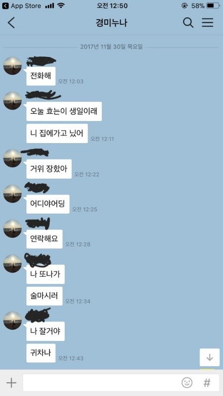 여튼 저 카톡은 11월 말꺼구요. 그전부터 저 여자한테 연락하지말아달라고 했는데 알겠다더니...몇번 연락하는거 걸렸었고. 카톡은 신랑 자고 있는데 카톡이 온걸 제가 보고 캡쳐해서 제폰에 저장해둔거에요.