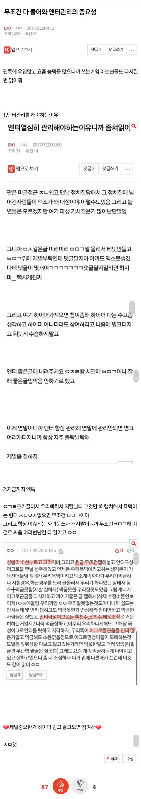17년 판들어온애들아 읽어...좀제발 엔터관리의중요성