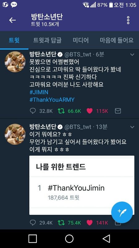 기쁜 날 기쁜 실트와 그걸 봐준 지민이가 너무 사랑스럽고 기쁘지만 한편으로는 이렇게 자주 실트 확인하는구나 싶어서...착잡하다