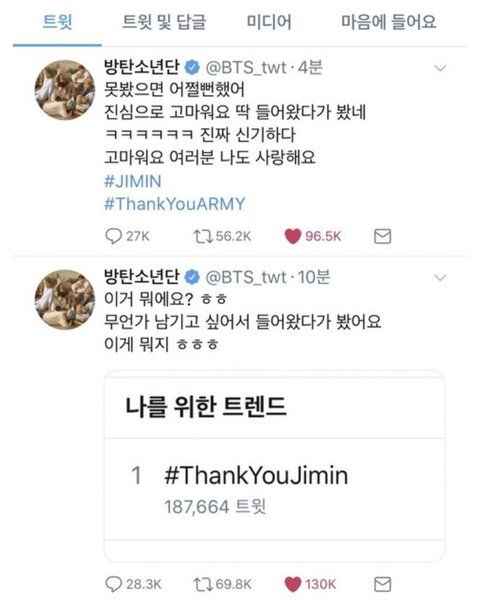 마음이 몽글몽글해져서 몇 글자 더 적어보자면.., 난 고딩때 큰뱅 이후로 아이돌에 관심가진 건 탄이들이 정말 처음인데... 아이돌이 이렇게 사람냄새+인간미 뿜뿜해도 되는건지, 아니 그게 가능한건지 싶을 때가 많다. 아이돌이라는 자체가 멀리 있을 때 더 빛나는 존재들이니까- 무튼 늘 팬들과 진심으로 소통하는 짐니 포함 일곱명이 참 고맙고 덕분에 아미들 모두 오늘 따수운 밤이 될 것 같다. 다들 방탄안에서 행복하자!