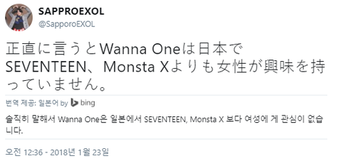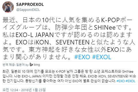 엑소팬 피셜 : 엑소 일본인기 세븐틴,아이콘이랑 동급이다.
