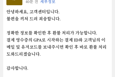 사기대 충전 안 된거 환불요청했는데