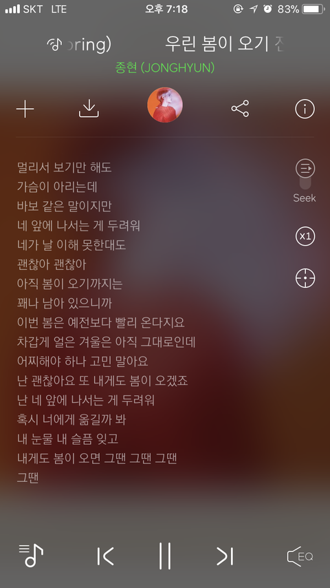 종현이 자체를, 종현이가 하고 싶은말을 담은 노래겠지..