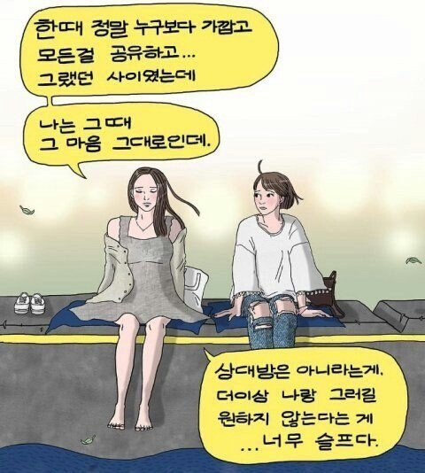 별거아닌일로 엄청 친했던 친구랑 얼굴만 보면 짜증나는 그런 사이로 바뀌고 오해에 오해가 쌓여서 그 친구들의 친구들과의 관계까지도 틀어지고 신경안쓰고 싶어도 신경이 쓰여서 매일매일이 스트레스야 나좀 위로해줘 힘들어 미쳐버릴것같아